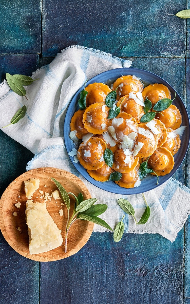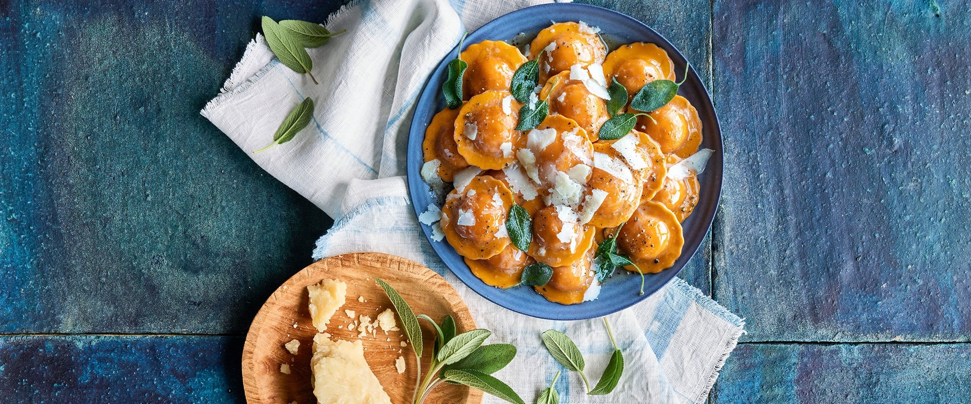 Ravioli à la courge musquée, beurre noisette, sauge et parmesan râpé