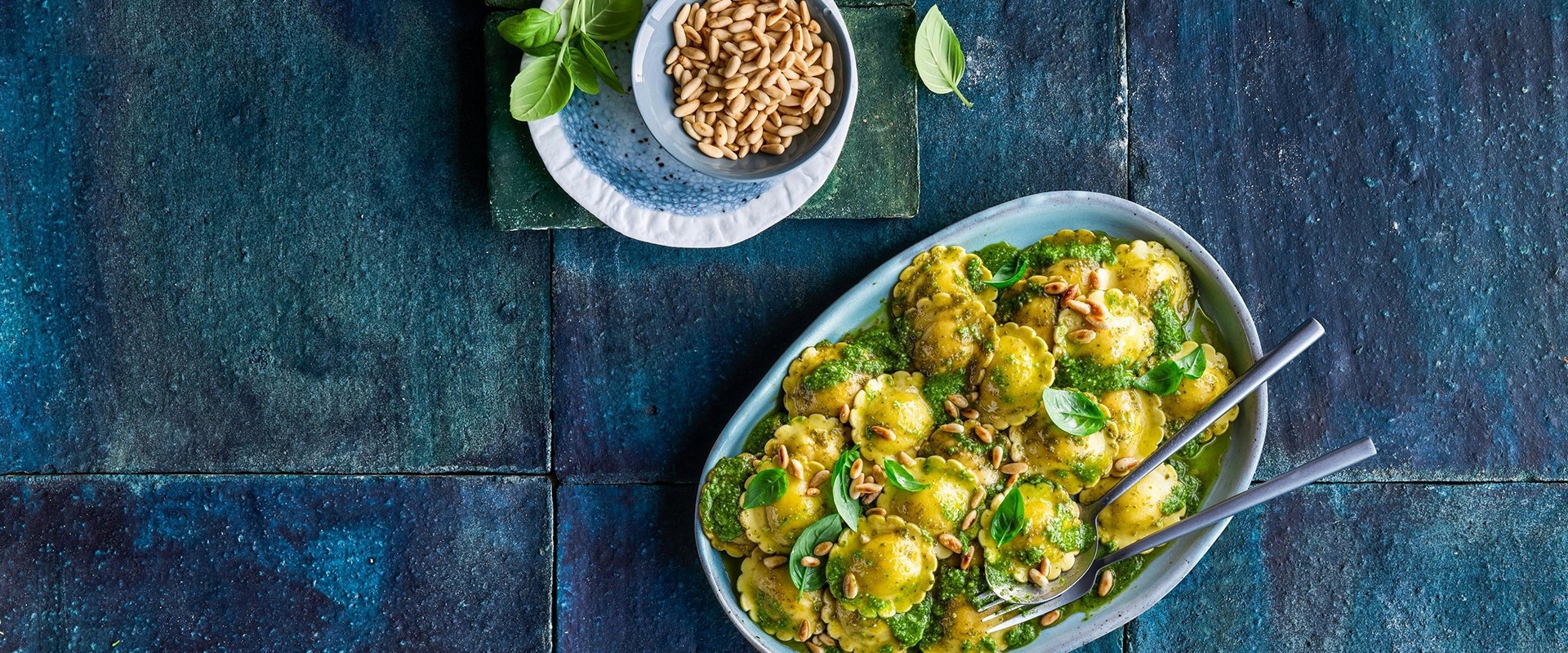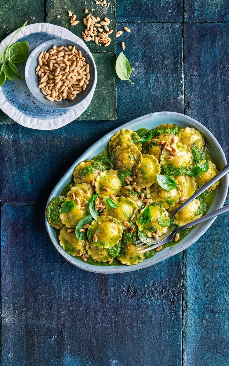 Utiliser juste assez de pesto pour enrober légèrement les ravioli.
