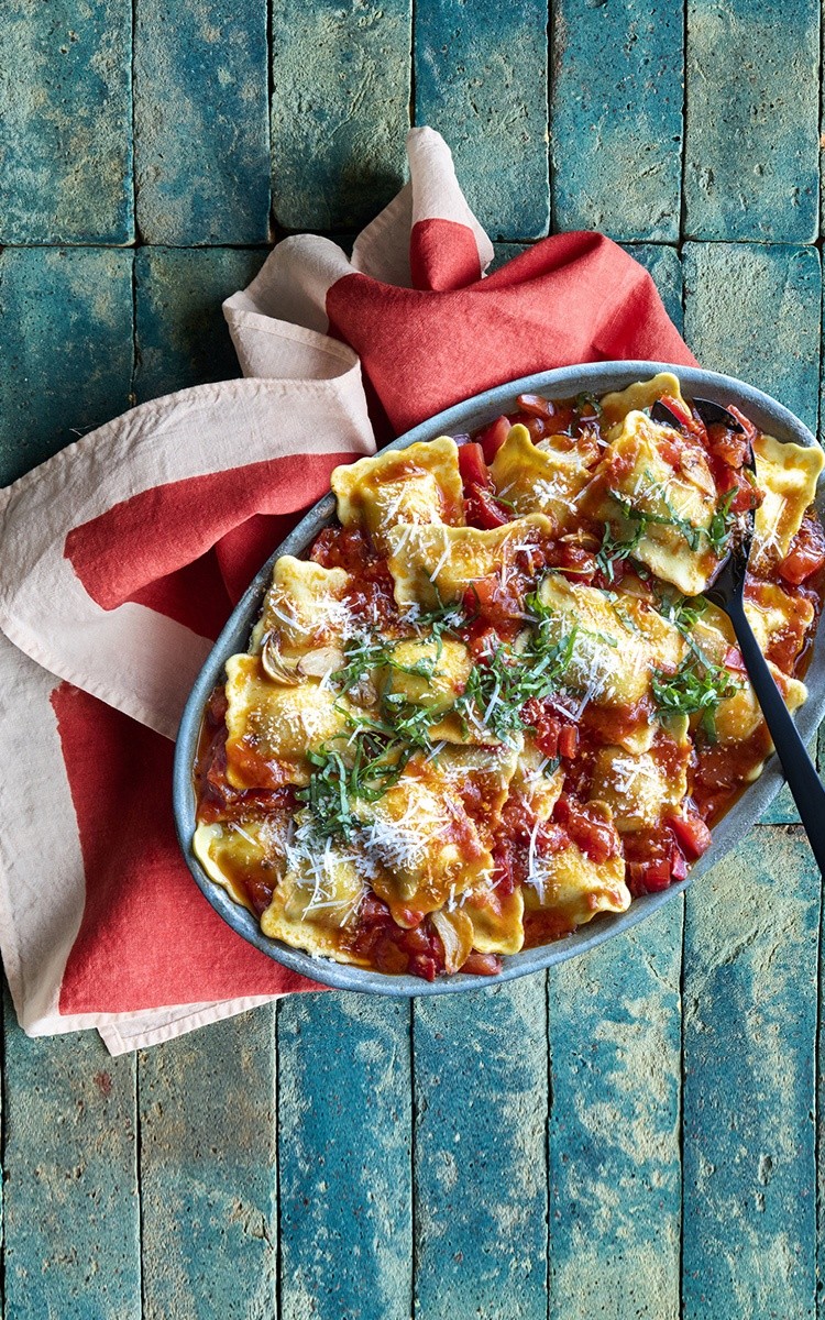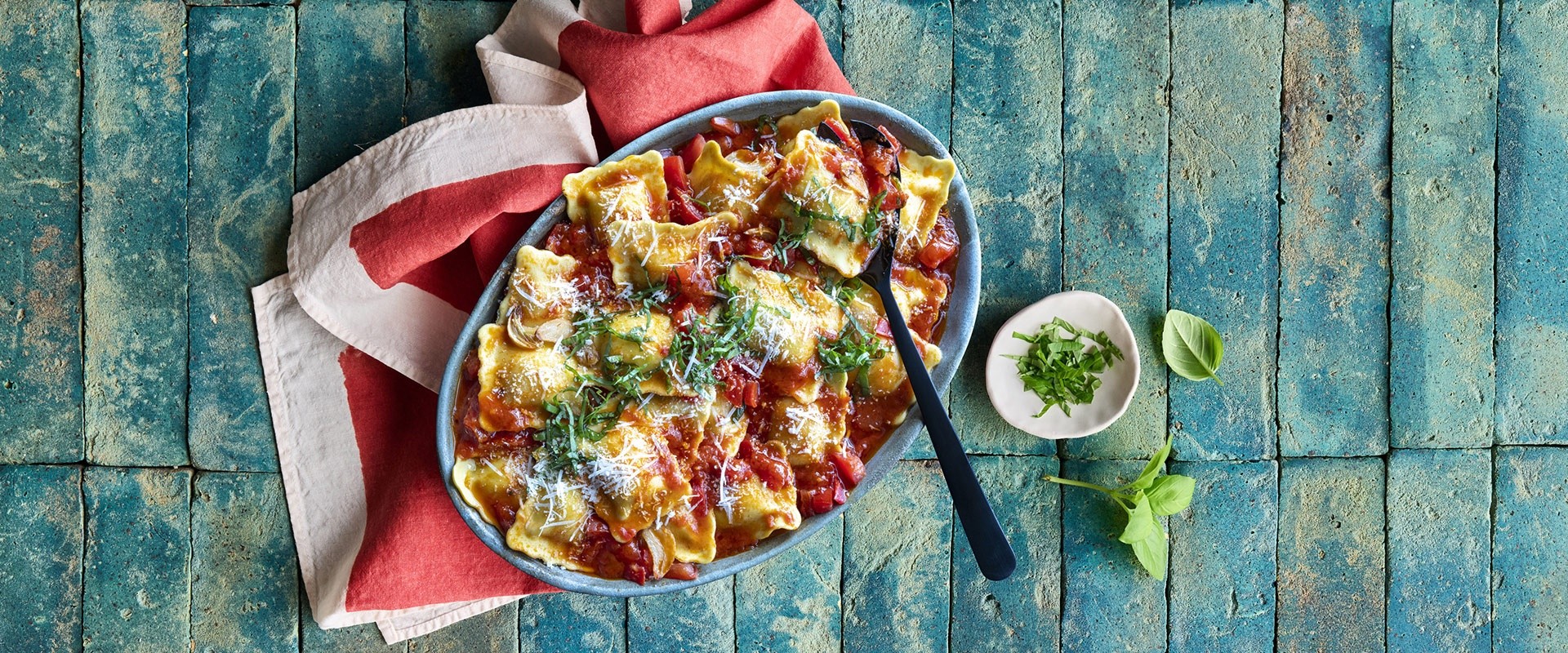 Ravioli à la ricotta et aux épinards,sauce tomates à l'ail et au basilic